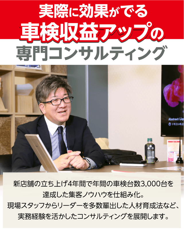 平成25年、車検の増客手法を他店に横展開するスーパーバイザー、事業部長を歴任。